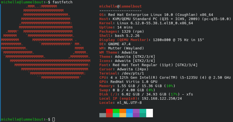 michelle@lummelbout:~$ sudo dnf install fastfetch